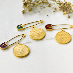 The Ayat-ul-Kursi Safety Pin Brooch is a beautifully designed accessory that carries both spiritual and aesthetic value. Engraved with Ayat-ul-Kursi, one of the most powerful verses from the Quran, this pin serves as a symbol of protection and blessings for the wearer.