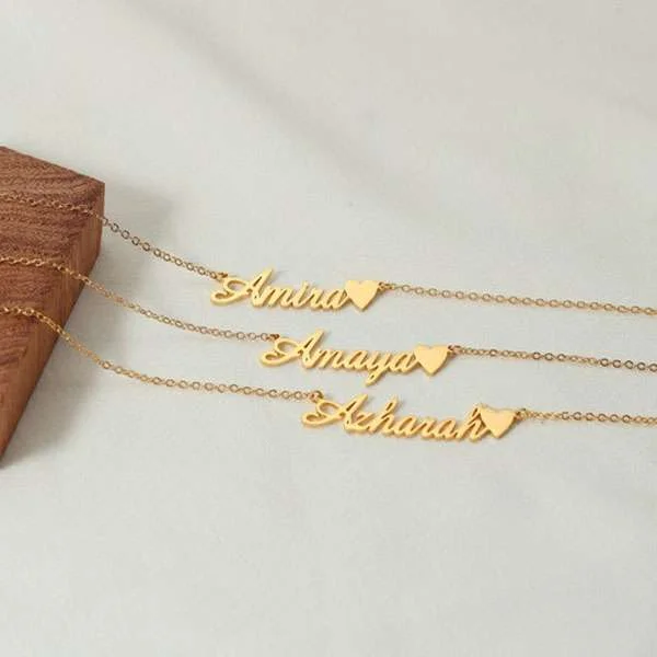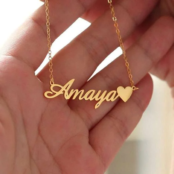 Make your loved one feel special with this beautifully crafted Custom Name Necklace with Heart. Designed to be unique, this necklace allows you to personalize it with any name of your choice, creating a one-of-a-kind piece that speaks to the heart.