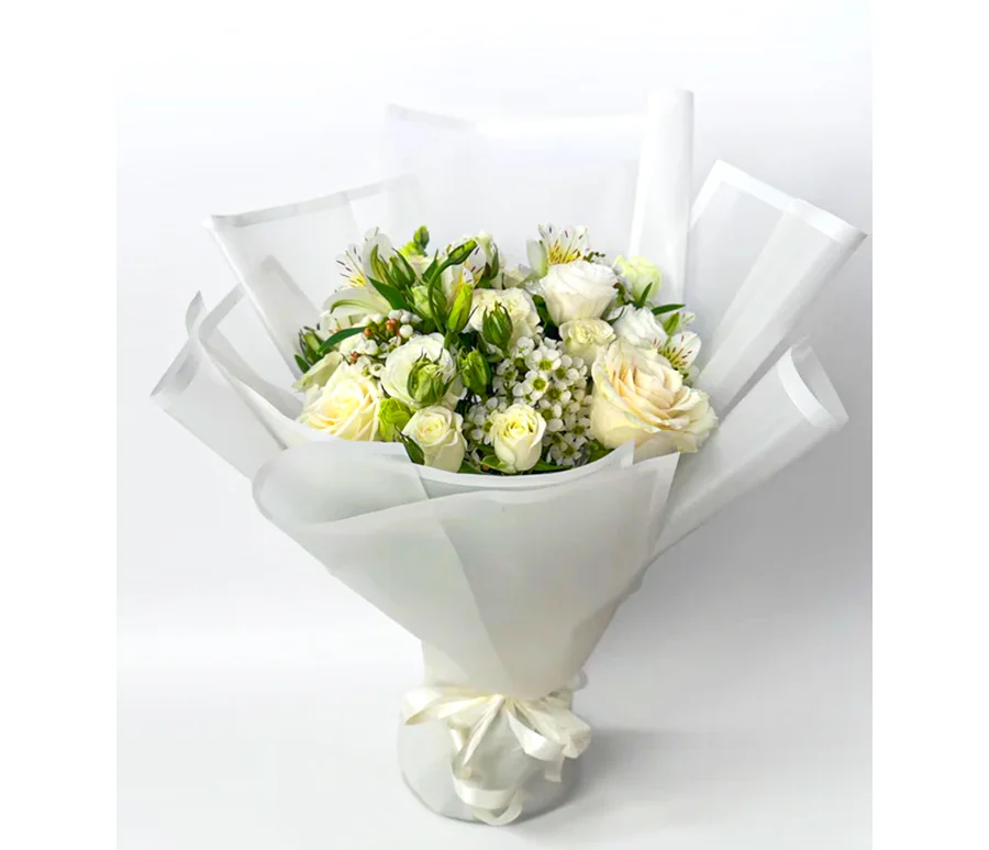 White roses are a symbol of new beginnings, sincerity, and peace, making this bouquet the perfect choice for weddings, anniversaries, sympathy gestures, or special occasions where elegance is essential. Whether you’re expressing love, appreciation, or sending a heartfelt message, this bouquet is designed to convey deep emotions in the most refined way.