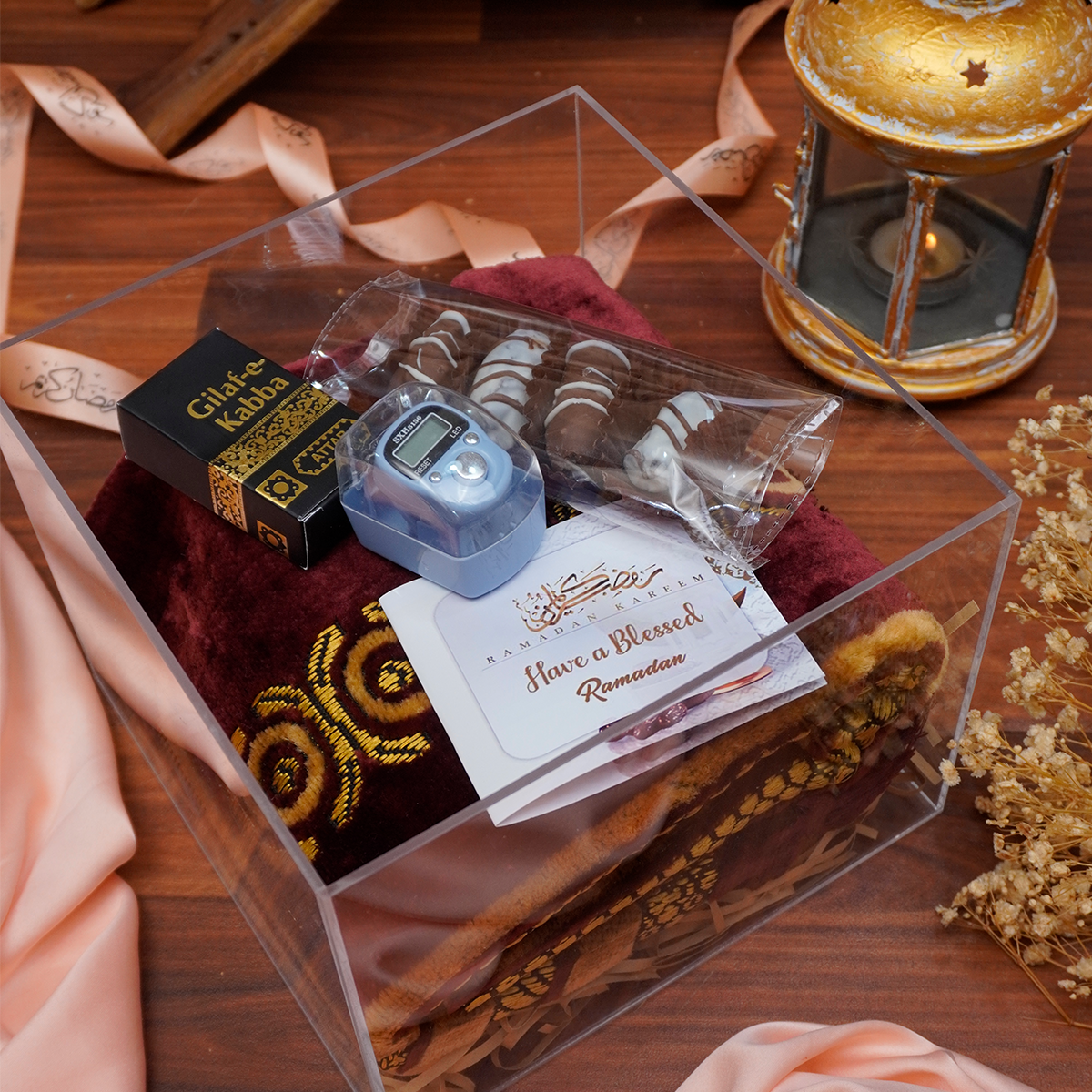 • Elegant acrylic gift box with premium Ramadan essentials