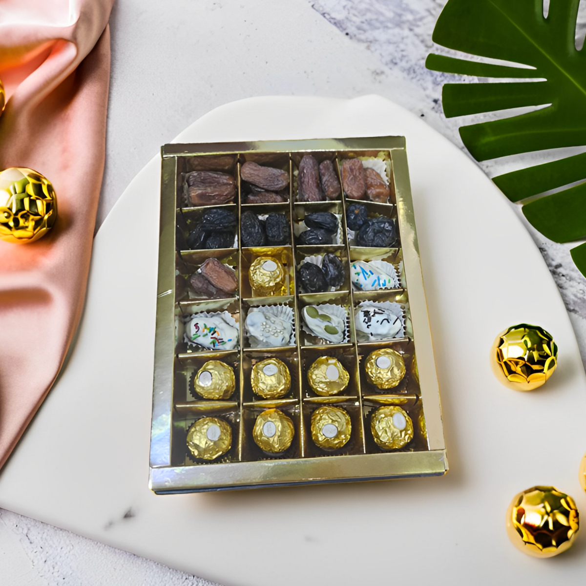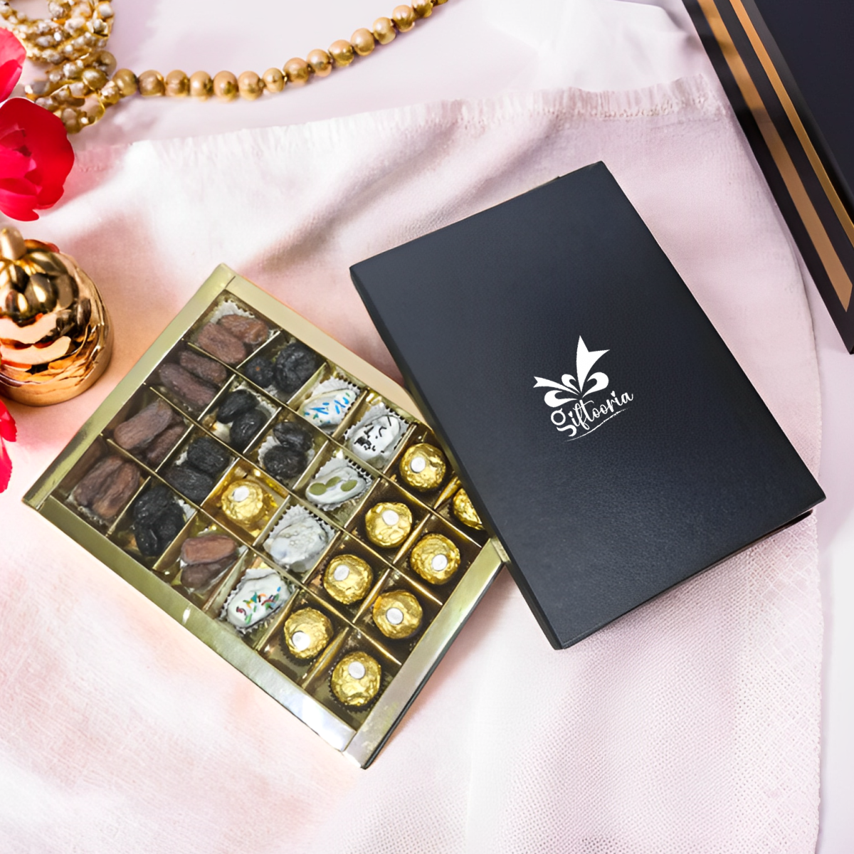 Our Ramadan Gift Box includes an enticing assortment of Ferrero Rocher chocolates, complemented by premium dried dates that symbolize prosperity and warmth during the holy month. The blend of traditional and modern flavors makes this box ideal for gifting to friends, family, colleagues, or business associates, ensuring that everyone feels special and appreciated during this sacred month.
